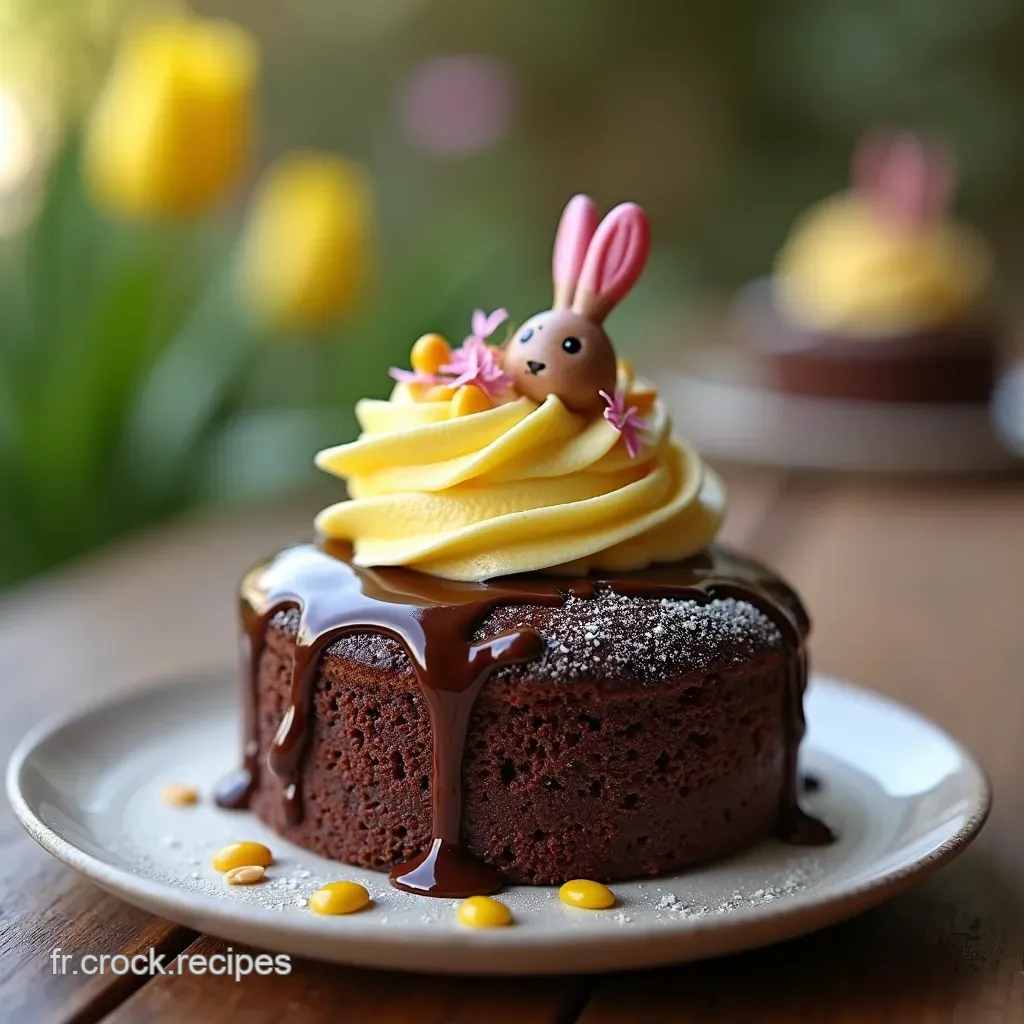 L'attrait principal réside dans l'aspect visuel. Ce n'est pas seulement un Gâteau chocolat Pâques créatif , c'est une petite scène.