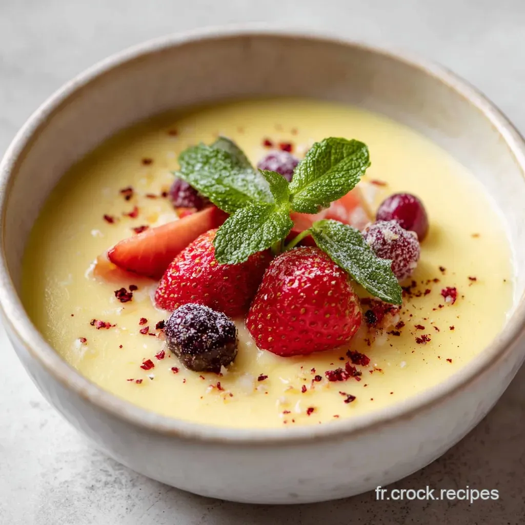 Le dressage est tout aussi important que le goût. Pour un effet "restaurant", sers ta crème bien froide dans une assiette creuse tiède, créant un contraste thermique intéressant. Elle est le partenaire idéal d'un Recette Clafoutis aux cerises encore tiède.