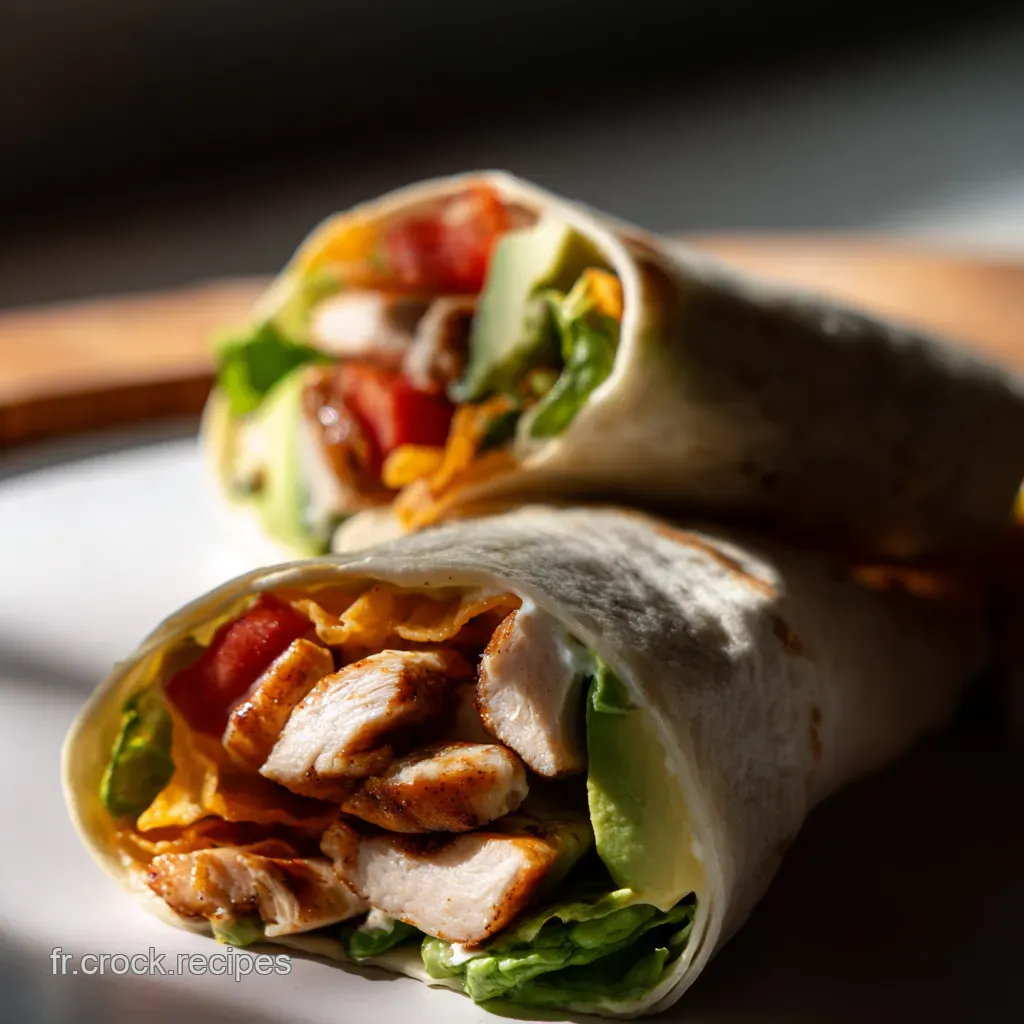 Envie d'un wrap végétarien rapide ? remplace le poulet par des haricots noirs grillés ou du tofu mariné. c'est tout aussi délicieux! et pour une version plus healthy, tu peux remplacer la crème fraîche par du yaourt grec nature ou du houmous.